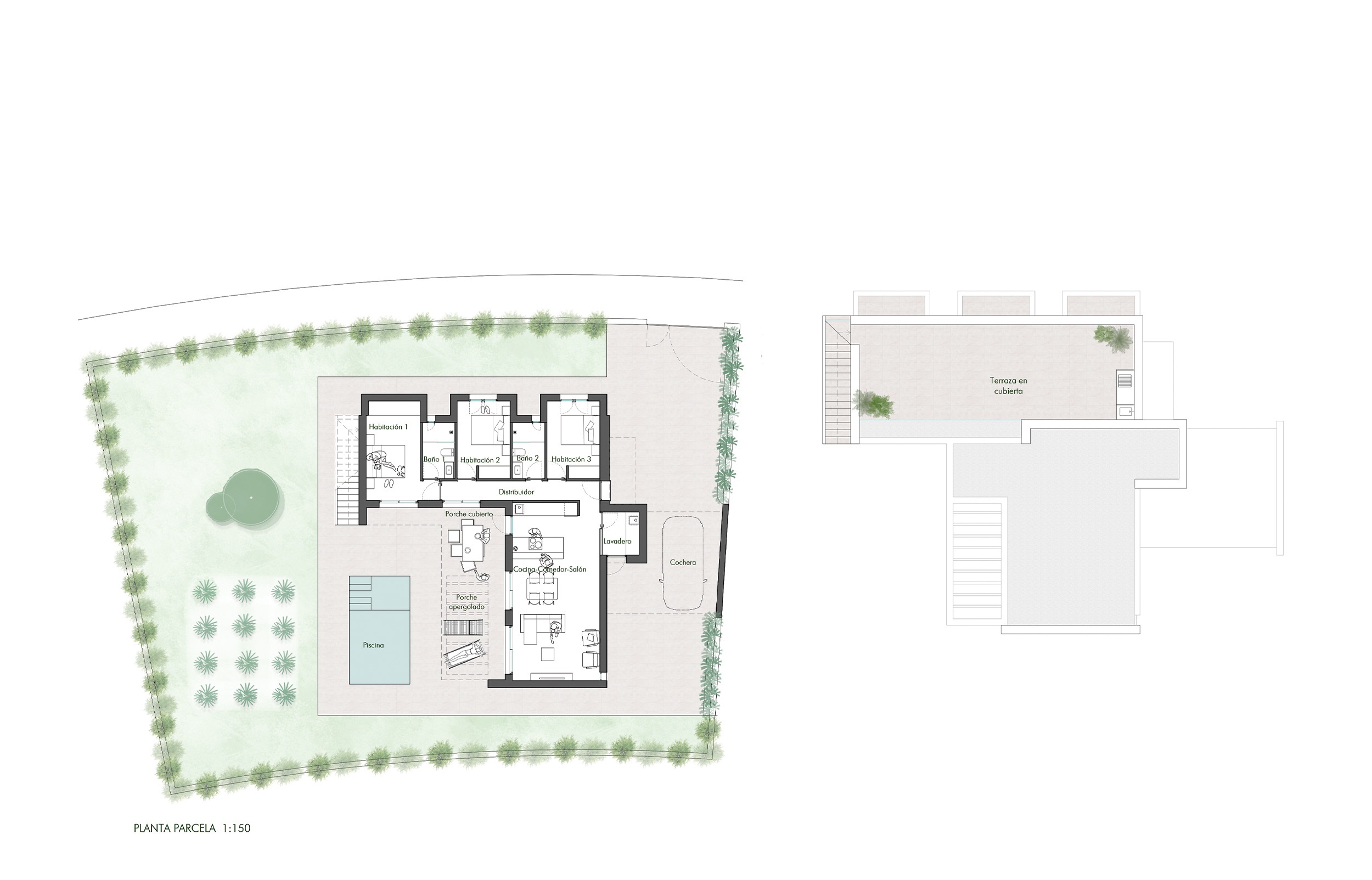Každý dům má soukromou zahradu, která nabízí ideální prostor pro užívání čerstvého vzduchu a přírody. Prostorné terasy jsou ideální pro relaxaci nebo pořádání venkovních setkání. Kromě toho nemovitosti zahrnují solárium, které poskytuje další prostor pro užívání slunce a výhledů. Soukromý bazén v každém domě přidává nádech luxusu, umožňuje obyvatelům osvěžit se a užívat si volné chvíle, aniž by museli opustit domov. Přístup do soukromé garáže zajišťuje pohodlí a bezpečnost parkování.