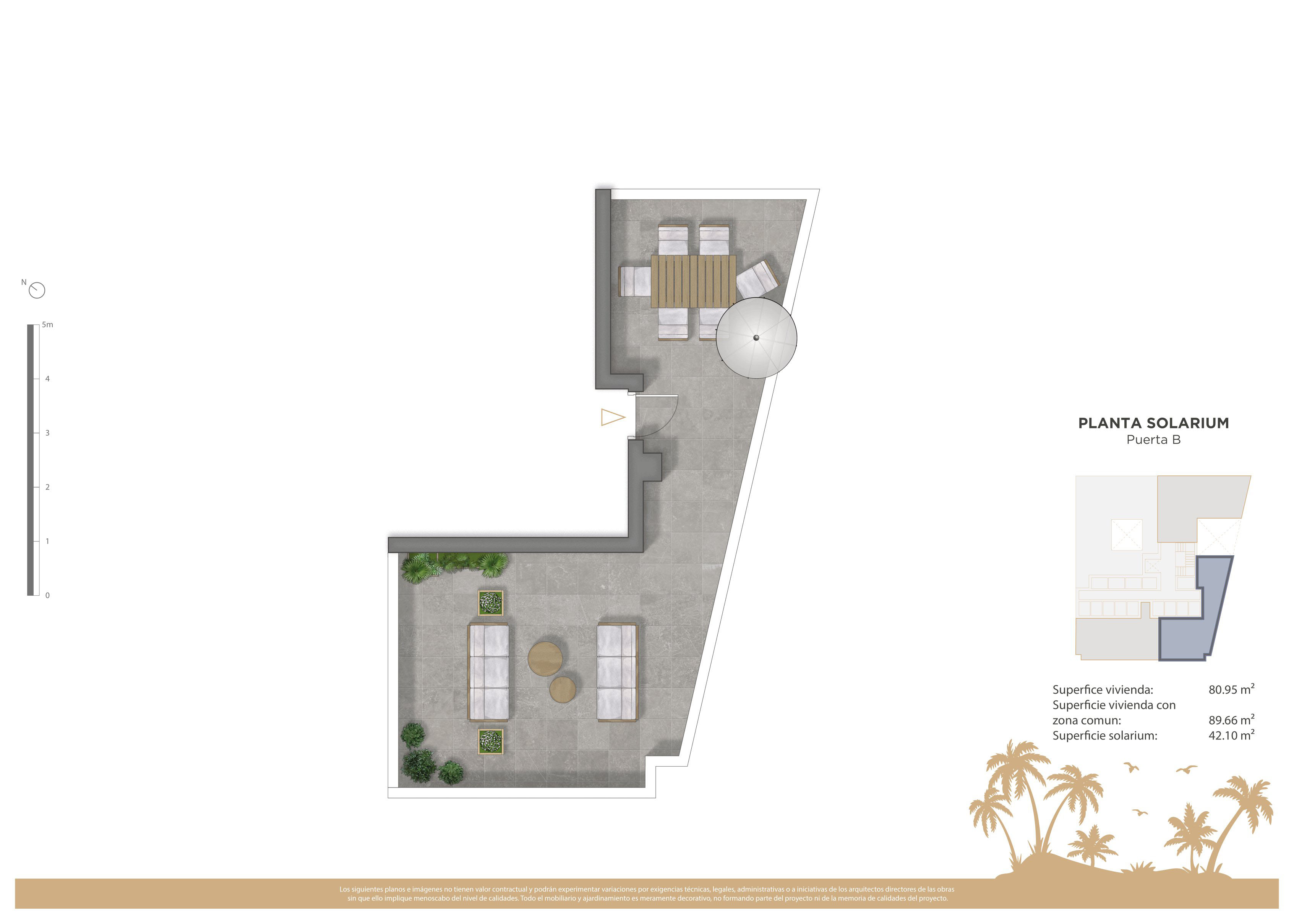 Venkovní prostory této rezidence jsou navrženy tak, aby doplňovaly přírodní prostředí Guardamar del Segura. Nemovitosti zahrnují soukromé terasy, ideální pro užívání si výhledu na moře a středomořského klimatu. Obyvatelé penthousů mají navíc přístup k exkluzivnímu soláriu, ideálnímu pro opalování v soukromí. Společné zahrady nabízejí zelený prostor, kde si můžete odpočinout a užívat si přírody, zatímco společný bazén je ideální pro osvěžení v horkých letních dnech. Blízkost k moři, pouhých 100 metrů, umožňuje užívat si procházky po pláži a venkovní aktivity.
