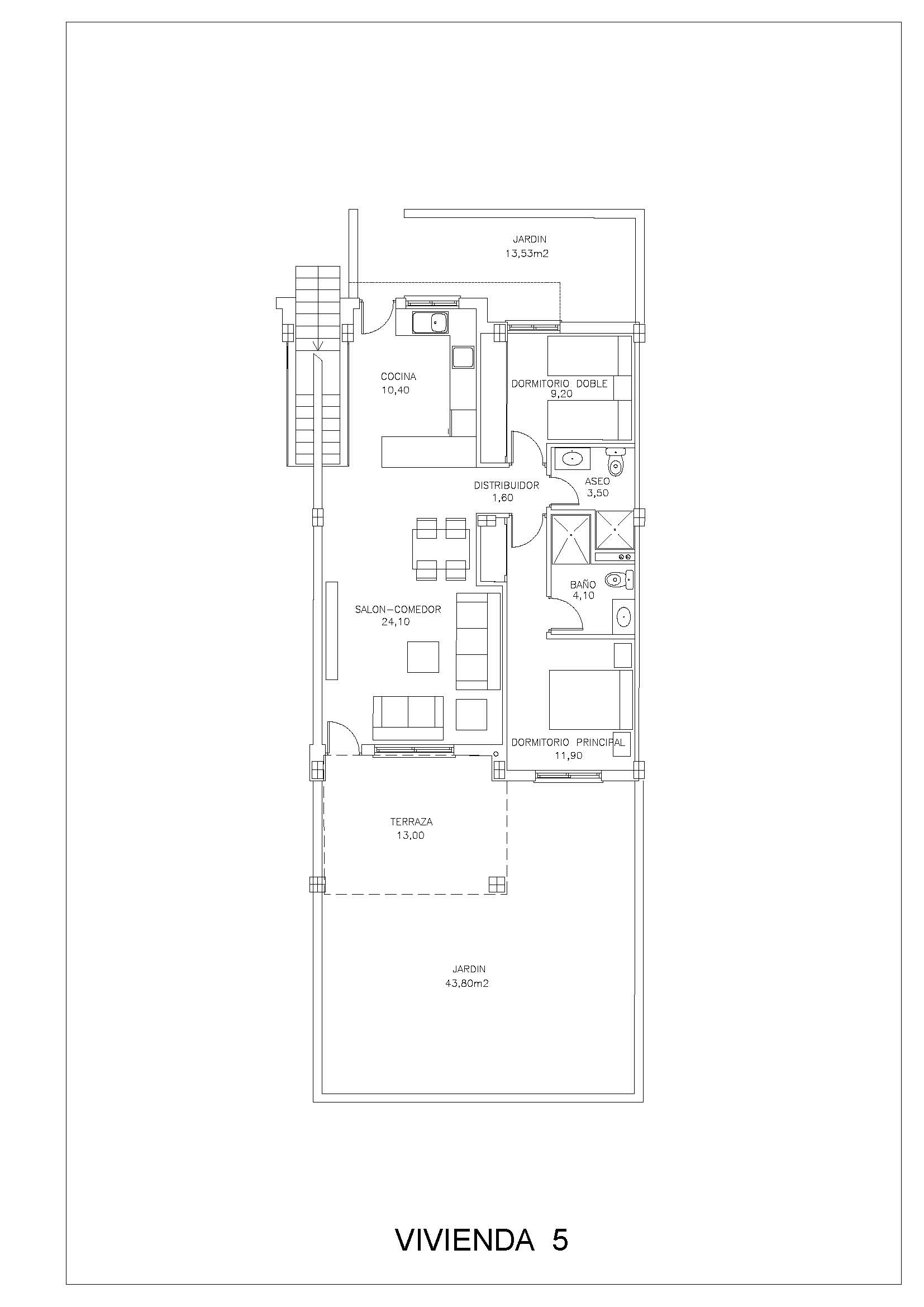 Udendørsarealerne i disse boliger er designet til at maksimere nydelsen af det middelhavske klima. Hver bungalow har en privat have, ideel til afslapning eller udendørs aktiviteter. Derudover inkluderer ejendommene en terrasse, perfekt til udendørs middage eller blot for at nyde havudsigten. Tilstedeværelsen af et privat solarium i hver bolig tilbyder et ekstra rum til at nyde solen i total privatliv, hvilket bliver et privilegeret sted at nyde det panoramiske udsyn over området.