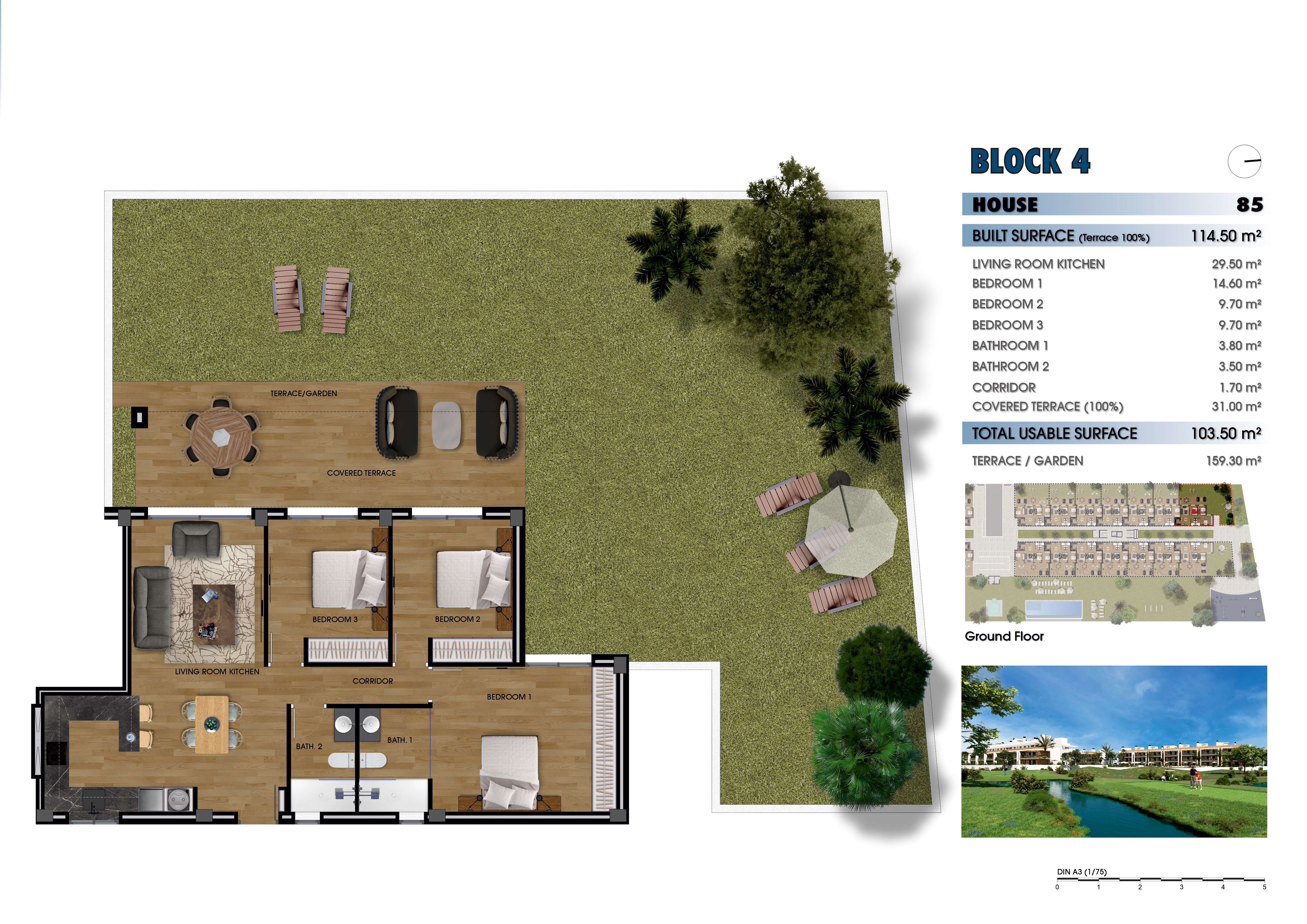 Indretningen af boligerne er omhyggeligt designet til at tilbyde komfort og modernitet. Gulve af porcelænsfliser tilføjer et elegant touch og er nemme at vedligeholde. Boligerne er udstyret med moderne apparater, der sikrer, at køkkenet er både funktionelt og stilfuldt. Elektriske skodder og videodørtelefon tilføjer et ekstra niveau af komfort og sikkerhed. Indbyggede skabe i soveværelserne giver rigelig opbevaringsplads og holder rummene organiserede og ryddelige. Planløsningsmulighederne inkluderer boliger med 2 og 3 soveværelser, alle med 2 badeværelser, hvilket sikrer tilstrækkelig plads til familier af forskellig størrelse.