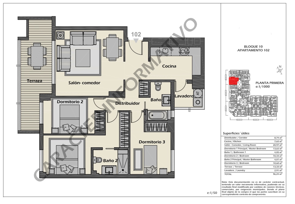 The interiors of the homes are carefully designed to offer comfort and functionality. Layout options include properties with 2, 3, and 4 bedrooms, all with 2 bathrooms. Floating floors add a contemporary touch, while air conditioning ensures a pleasant environment year-round. Built-in wardrobes optimize storage space, and the video intercom adds an additional level of security and convenience.