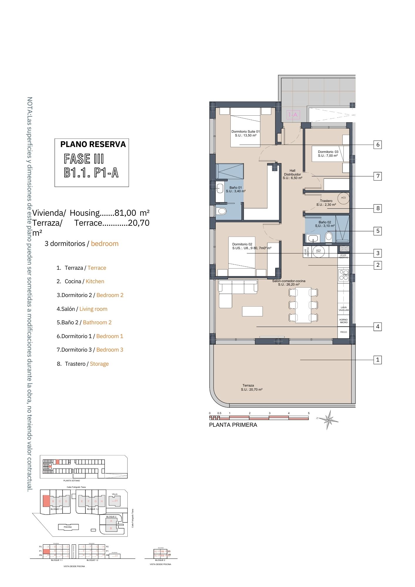 Inside, the homes are equipped with modern features that ensure comfort and style. The apartments and penthouses offer options of 2 or 3 bedrooms and 2 or 3 bathrooms, catering to different family needs. Porcelain tile floors add a touch of elegance and are easy to maintain. The kitchens are equipped with appliances, making daily life easier. Built-in wardrobes provide efficient storage, while the pre-installation of air conditioning ensures a pleasant environment year-round. Additionally, there is the option to purchase a garage, adding convenience and security.