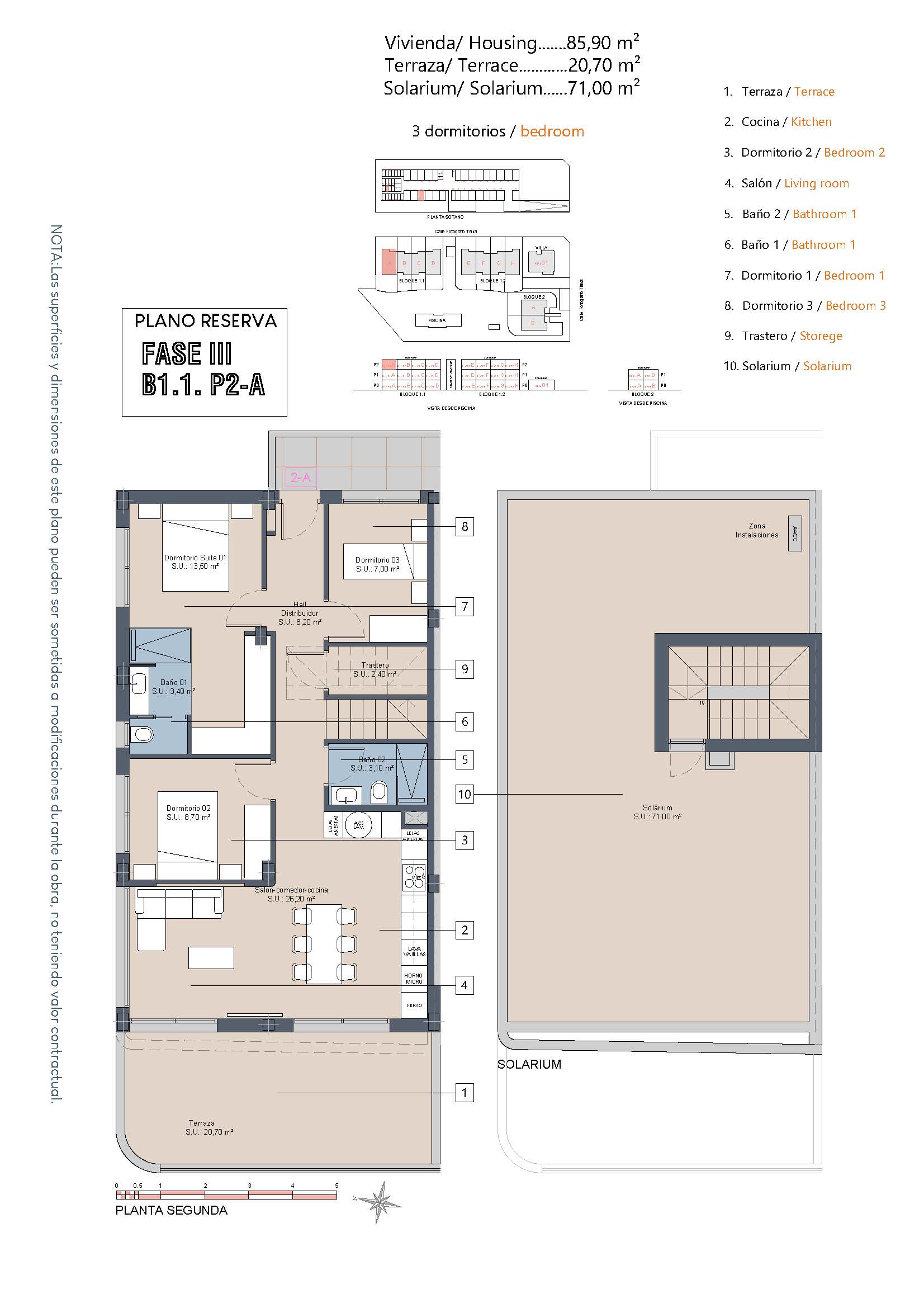 Inside, the homes are equipped with modern features that ensure comfort and style. The apartments and penthouses offer options of 2 or 3 bedrooms and 2 or 3 bathrooms, catering to different family needs. Porcelain tile floors add a touch of elegance and are easy to maintain. The kitchens are equipped with appliances, making daily life easier. Built-in wardrobes provide efficient storage, while the pre-installation of air conditioning ensures a pleasant environment year-round. Additionally, there is the option to purchase a garage, adding convenience and security.