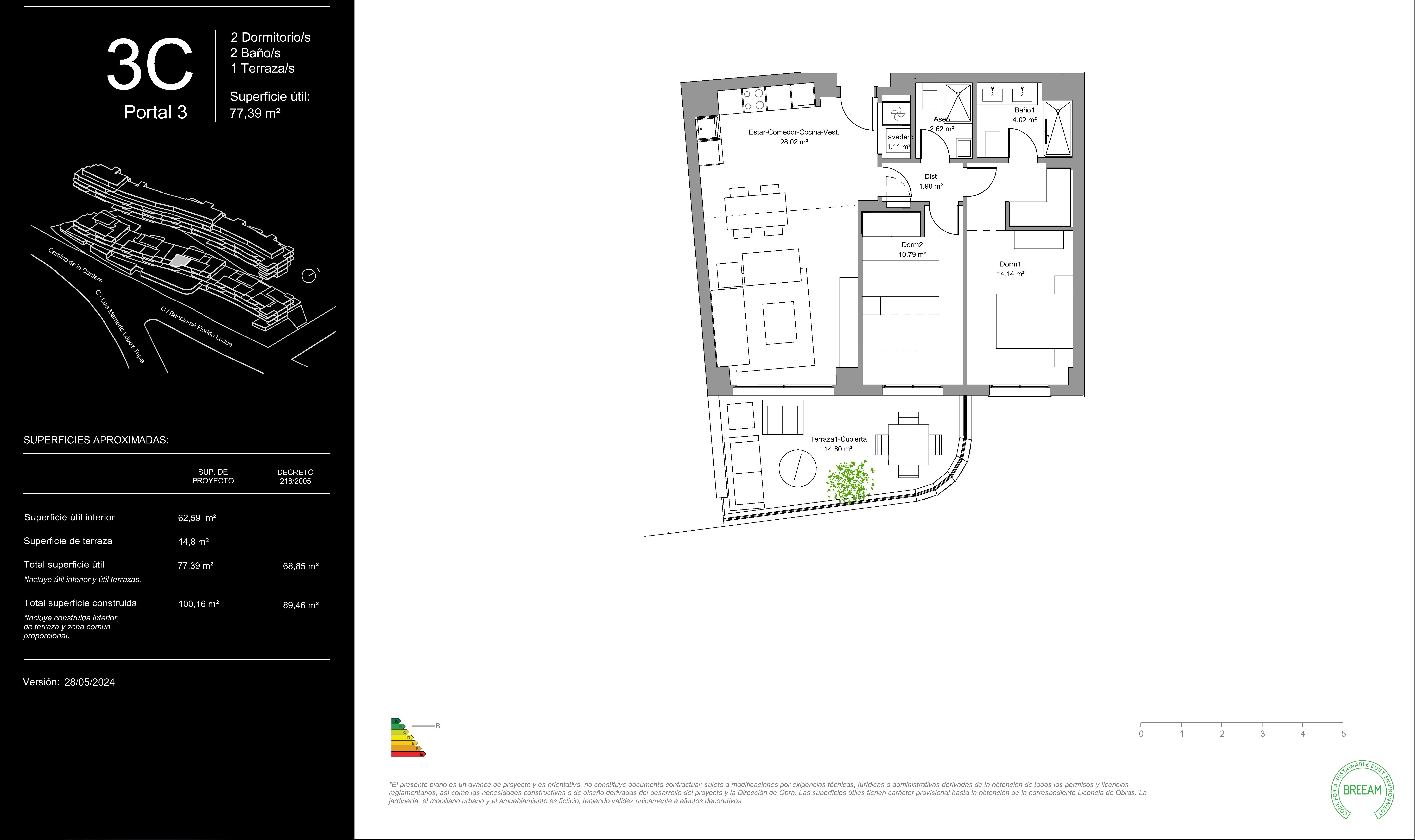 La conception architecturale de ce complexe résidentiel se caractérise par ses vastes terrasses, qui se distinguent par leurs formes incurvées et occupent une grande partie de la façade, maximisant ainsi le lien avec l'environnement naturel. Ces terrasses sont orientées vers l'extérieur, ce qui permet à chaque maison de jouir d'une vue imprenable sur la Méditerranée et le centre-ville de Malaga. En outre, les jardins privés des rez-de-chaussée ajoutent une touche de nature et d'intimité. Cette conception extérieure est complétée par des fenêtres allant du sol au plafond qui permettent à la lumière d'inonder les espaces intérieurs, créant ainsi une transition transparente entre l'intérieur et l'extérieur.