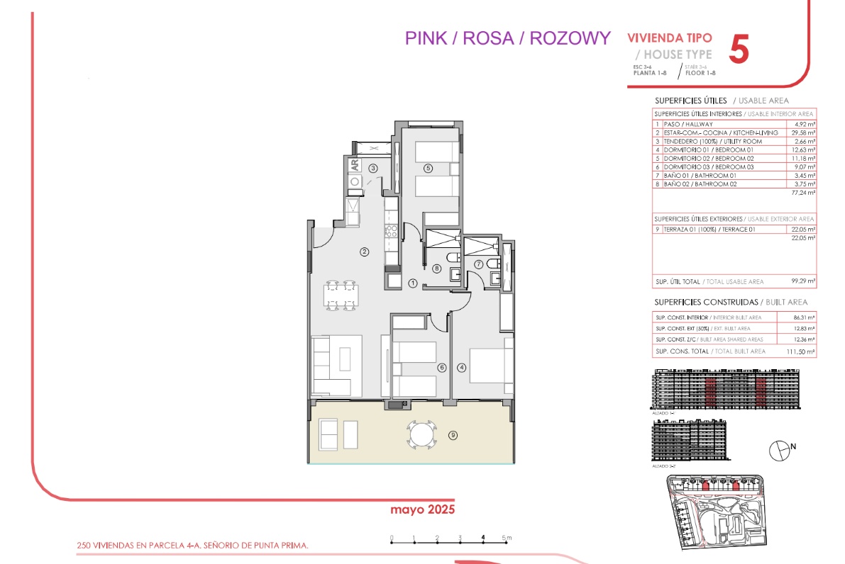 Ligger i den vakre byen Torrevieja, tilbyr dette boligkomplekset en unik boopplevelse med havutsikt. Tilbudet inkluderer 24 eiendommer, inkludert leiligheter og førsteetasjer, designet for å møte behovene til de mest krevende beboerne. Nærheten til havet, bare 500 meter unna, gjør det mulig å nyte sjøbrisen og enestående landskap. Hver bolig er utstyrt med moderne funksjoner som garanterer komfort og funksjonalitet, som porselensfliser, videoporttelefon, elektriske persienner og hvitevarer av høy kvalitet. I tillegg har alle eiendommene klimaanlegg og innebygde skap, noe som sikrer et behagelig og organisert miljø. Boligenes utforming varierer mellom to og tre soverom, med to bad, og tilbyr alternativer for forskjellige livsstiler og familiens behov.