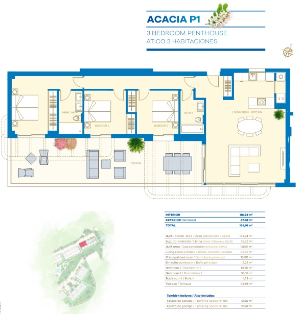 Interiøret i disse penthouseleilighetene i Mijas er designet for å tilby maksimal komfort og funksjonalitet. Med tre soverom og tre bad er hver plass nøye utformet for å møte behovene til et moderne liv. Gulvvarme sikrer en behagelig temperatur året rundt, mens toppmoderne hvitevarer gjør daglige oppgaver enklere. Innebygde skap gir effektiv lagring, og opprettholder orden og estetikk. I tillegg gir videoporttelefonen sikkerhet og bekvemmelighet, slik at man enkelt og effektivt kan kontrollere tilgangen til hjemmet.