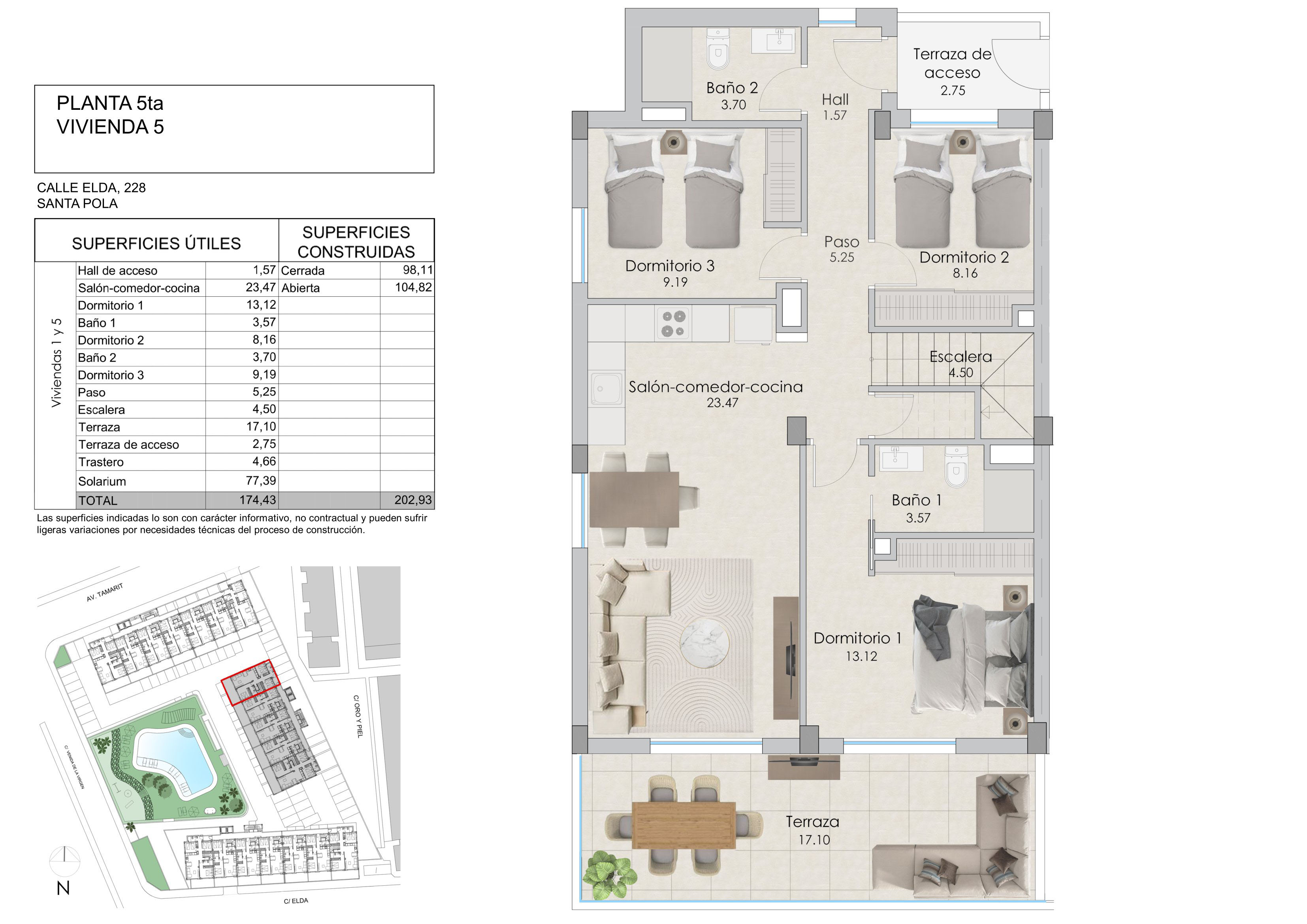Zewnętrza tego kompleksu mieszkaniowego w Santa Pola zostały zaprojektowane, aby maksymalizować przyjemność z otoczenia śródziemnomorskiego. Nieruchomości posiadają tarasy oferujące widok na morze, idealne do relaksu na świeżym powietrzu. Ponadto, niektóre typy obejmują solarium, zapewniając dodatkową przestrzeń do wypoczynku i relaksu pod słońcem. Dodanie pergoli i jacuzzi w niektórych jednostkach dodaje luksusu i komfortu, pozwalając mieszkańcom cieszyć się chwilami relaksu w prywatności swojego domu.