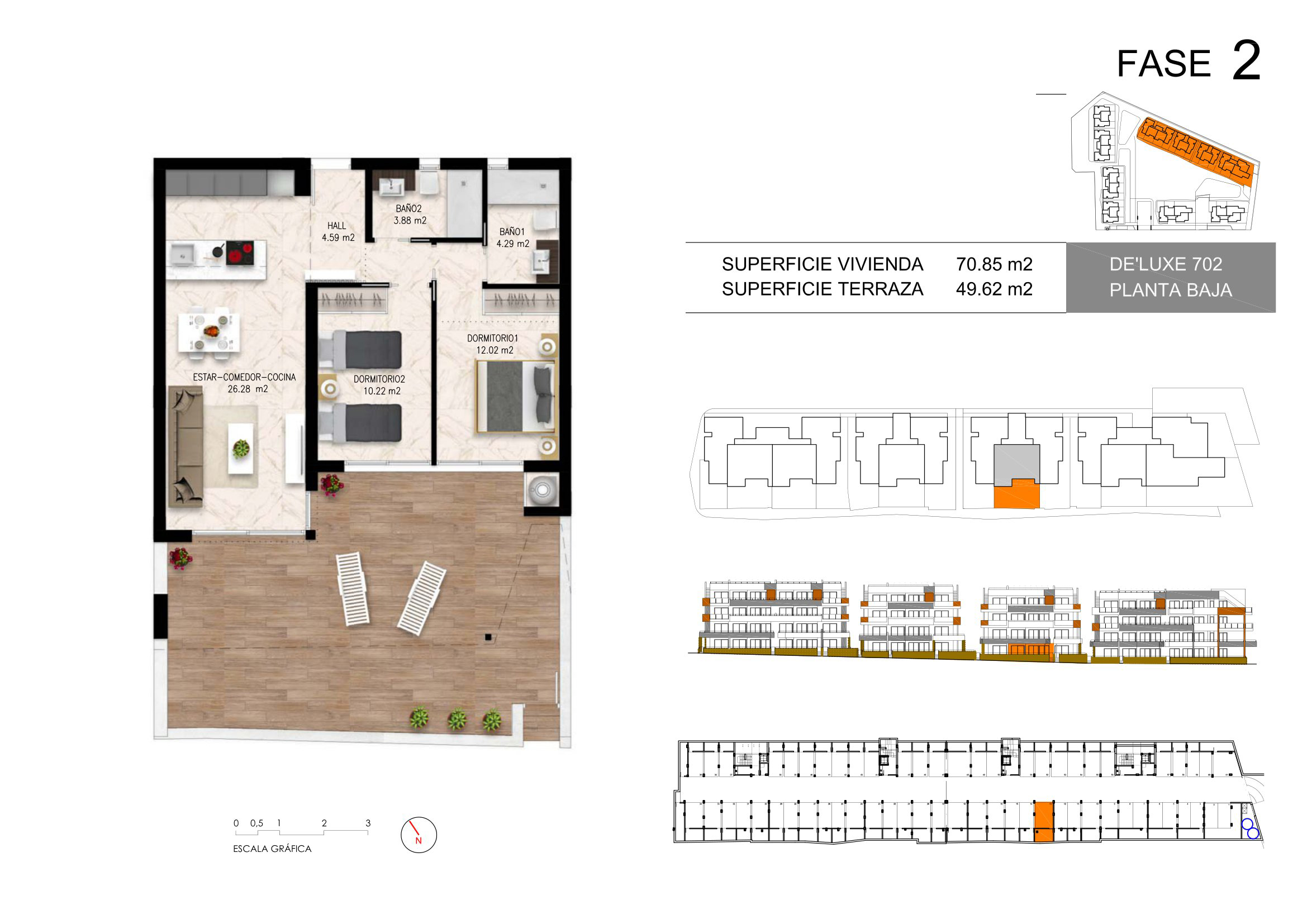 Inwestycja obejmuje łącznie 144 luksusowe apartamenty z przestronnymi tarasami. Te 144 mieszkania są rozmieszczone w 10 blokach, każdy z parterem, pierwszym, drugim i najwyższym piętrem. Wszystkie z prywatnymi tarasami i solarium, a także z własną windą. Kompleks mieszkaniowy obejmie również wspólny basen, plac zabaw dla dzieci i rozległe tereny zielone. Obszary wspólne otoczone są naturalnymi trawnikami, palmami, fontannami i ścieżkami, które pozwalają w pełni cieszyć się wyjątkowym naturalnym środowiskiem.