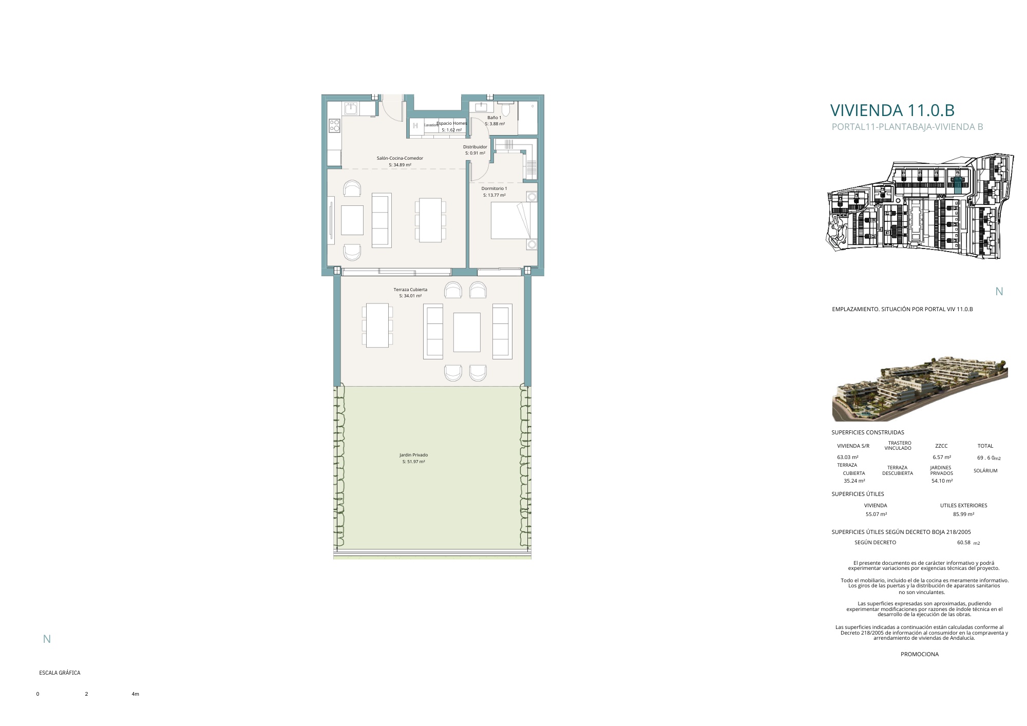De interieurs van de woningen zijn ontworpen om maximaal comfort en functionaliteit te bieden. De indelingsopties omvatten appartementen en benedenverdiepingen met 1, 2 of 3 slaapkamers, die zich aanpassen aan verschillende gezinsbehoeften. De badkamers, beschikbaar in configuraties van 1 of 2, zijn uitgerust met moderne afwerkingen. De woningen beschikken over ingebouwde kasten, die voldoende opbergruimte bieden. Bovendien bevatten sommige typologieën een solarium, dat extra ruimte biedt om in alle privacy van de zon te genieten.