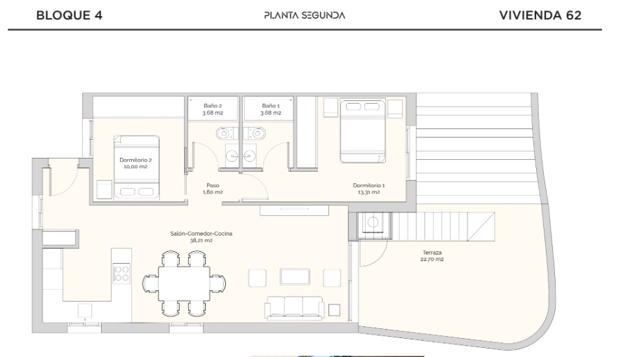 Het interieur van de woningen is zorgvuldig ontworpen om comfort en moderniteit te bieden. De appartementen, begane grond en penthouses zijn voorzien van porseleinen vloertegels, die een elegante uitstraling geven en gemakkelijk te onderhouden zijn. Alle eigendommen zijn uitgerust met airconditioning, wat het hele jaar door een aangename omgeving garandeert. Ingebouwde kasten bieden veel opbergruimte, terwijl de video-intercom een extra niveau van veiligheid en gemak toevoegt. De indeling omvat twee slaapkamers en twee badkamers, die voldoen aan de behoeften van verschillende soorten gezinnen.