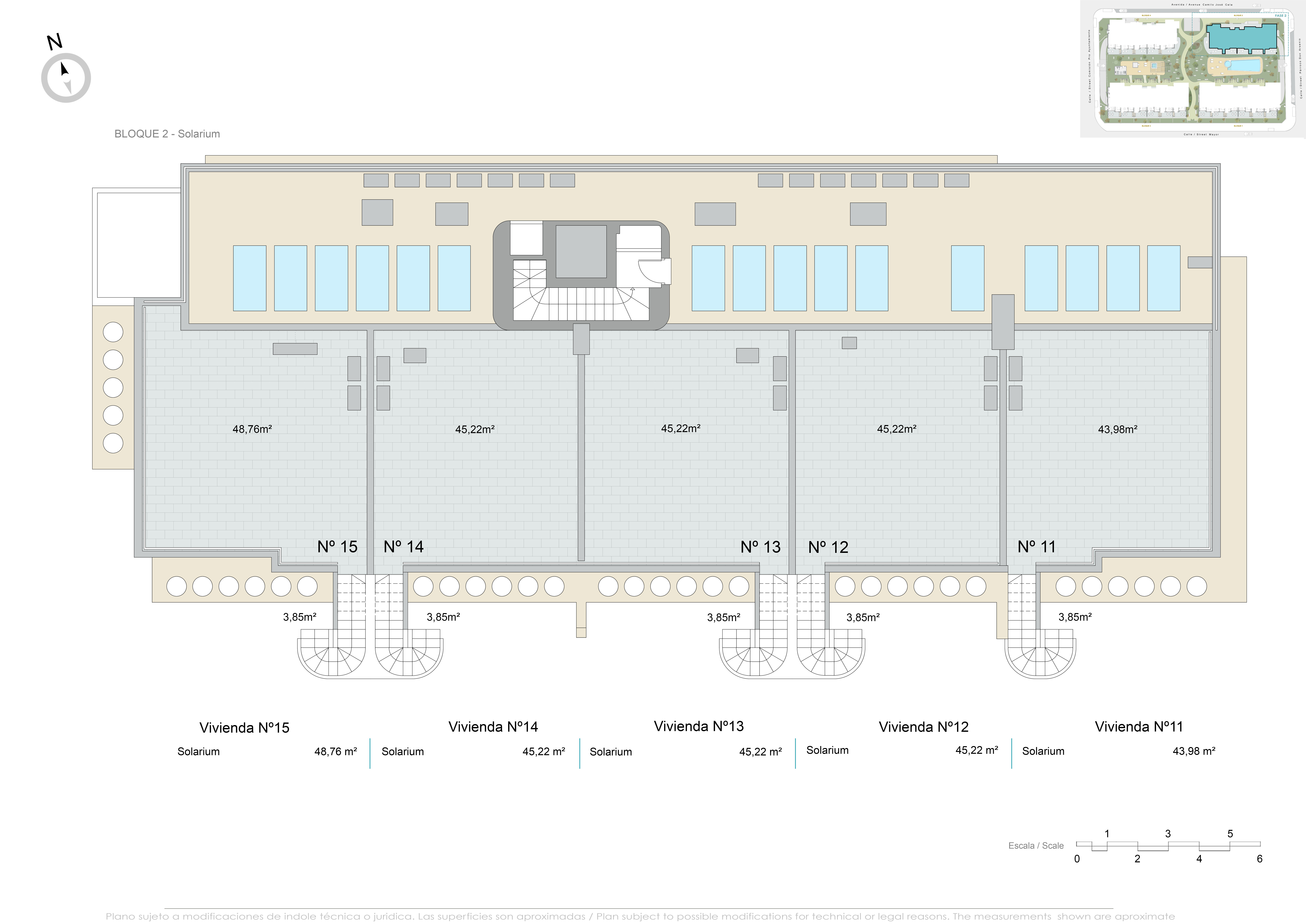 De buitenruimtes van deze woningen zijn ontworpen om optimaal te genieten van het mediterrane klimaat. Elke woning heeft een terras, ideaal om buiten te ontspannen of te genieten van familiediners. Bovendien omvatten sommige typen een privétuin, die extra groene ruimte biedt voor recreatie of tuinieren. Voor degenen die op zoek zijn naar panoramische uitzichten, bieden de penthouses een solarium, perfect om te zonnebaden of de omgeving te bewonderen. De afstand van slechts 2 km tot de zee maakt het mogelijk om op elk moment van de zeebries en kustwandelingen te genieten.