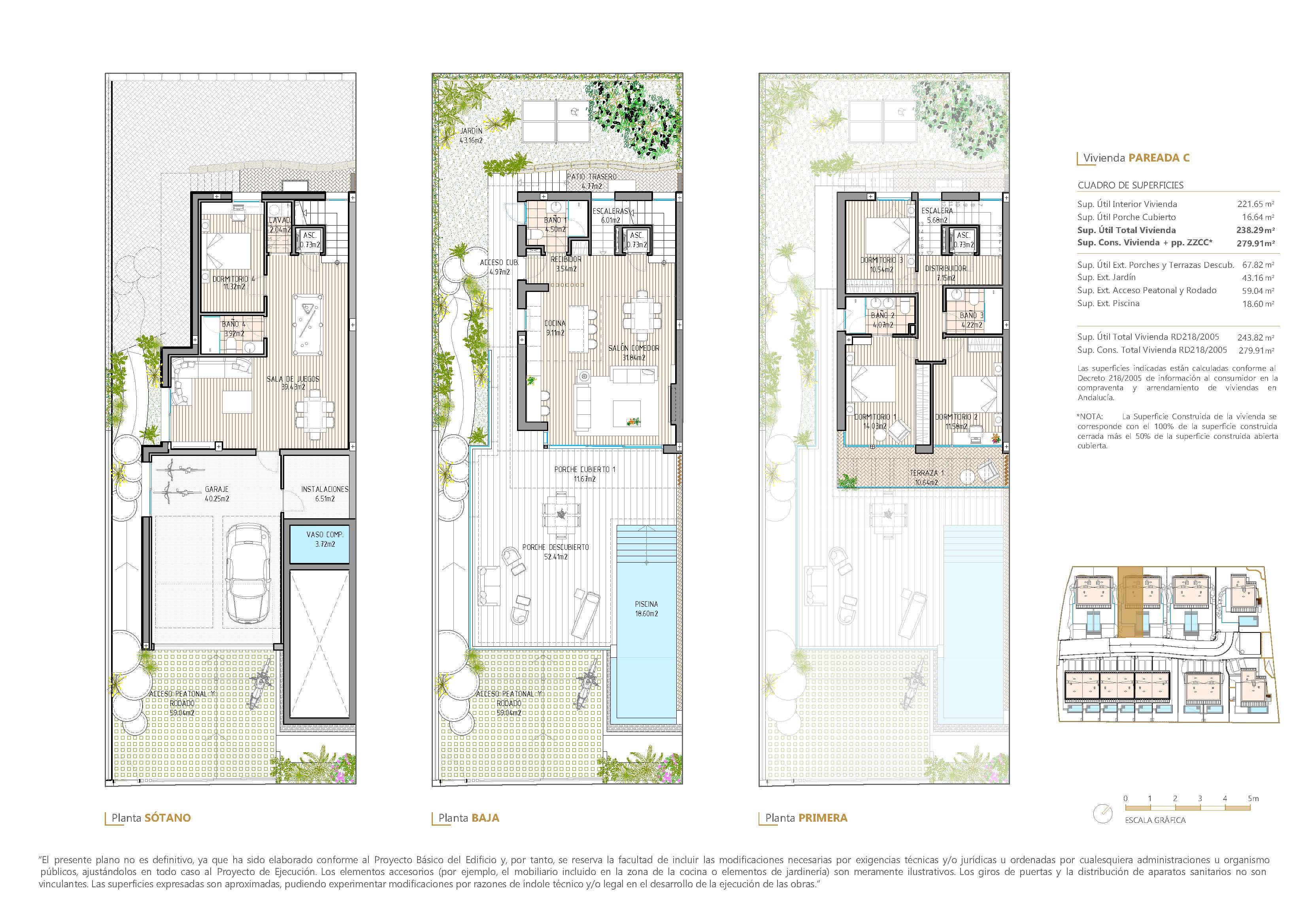 De buitenruimtes van deze woningen zijn ontworpen om optimaal te genieten van het mediterrane klimaat. Elke woning heeft een privé tuin, perfect voor buitenactiviteiten of gewoon om te ontspannen in een natuurlijke omgeving. De ruime terrassen bieden extra ruimte om te genieten van het uitzicht en de buitenlucht, terwijl de privézwembaden een oase van verfrissing bieden tijdens de warme zomermaanden. Bovendien weerspiegelt de pre-installatie voor het opladen van elektrische auto's een toewijding aan duurzaamheid en innovatie, waardoor bewoners kunnen genieten van een moderne en milieuvriendelijke levensstijl.