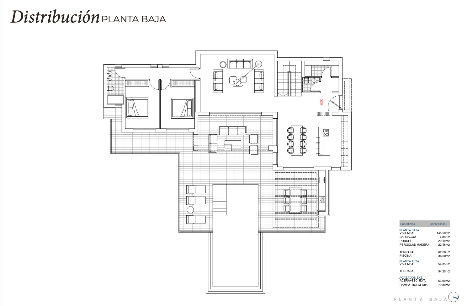 Het interieur van de villa is ontworpen met een focus op luxe en functionaliteit. De drie slaapkamers zijn uitgerust met inbouwkasten, die voldoende opbergruimte bieden. De drie badkamers zorgen voor comfort en privacy voor alle gezinsleden. De villa is voorzien van vloerverwarming, wat een warme en gezellige sfeer garandeert tijdens de koudere maanden. Elektrische rolluiken voegen een modern tintje toe en zijn eenvoudig te gebruiken. Bovendien is de keuken volledig uitgerust met hoogwaardige apparatuur, waardoor het bereiden van maaltijden een plezierige ervaring wordt. Elk detail van het interieur is zorgvuldig overwogen om een huis te bieden dat elegantie en comfort combineert.