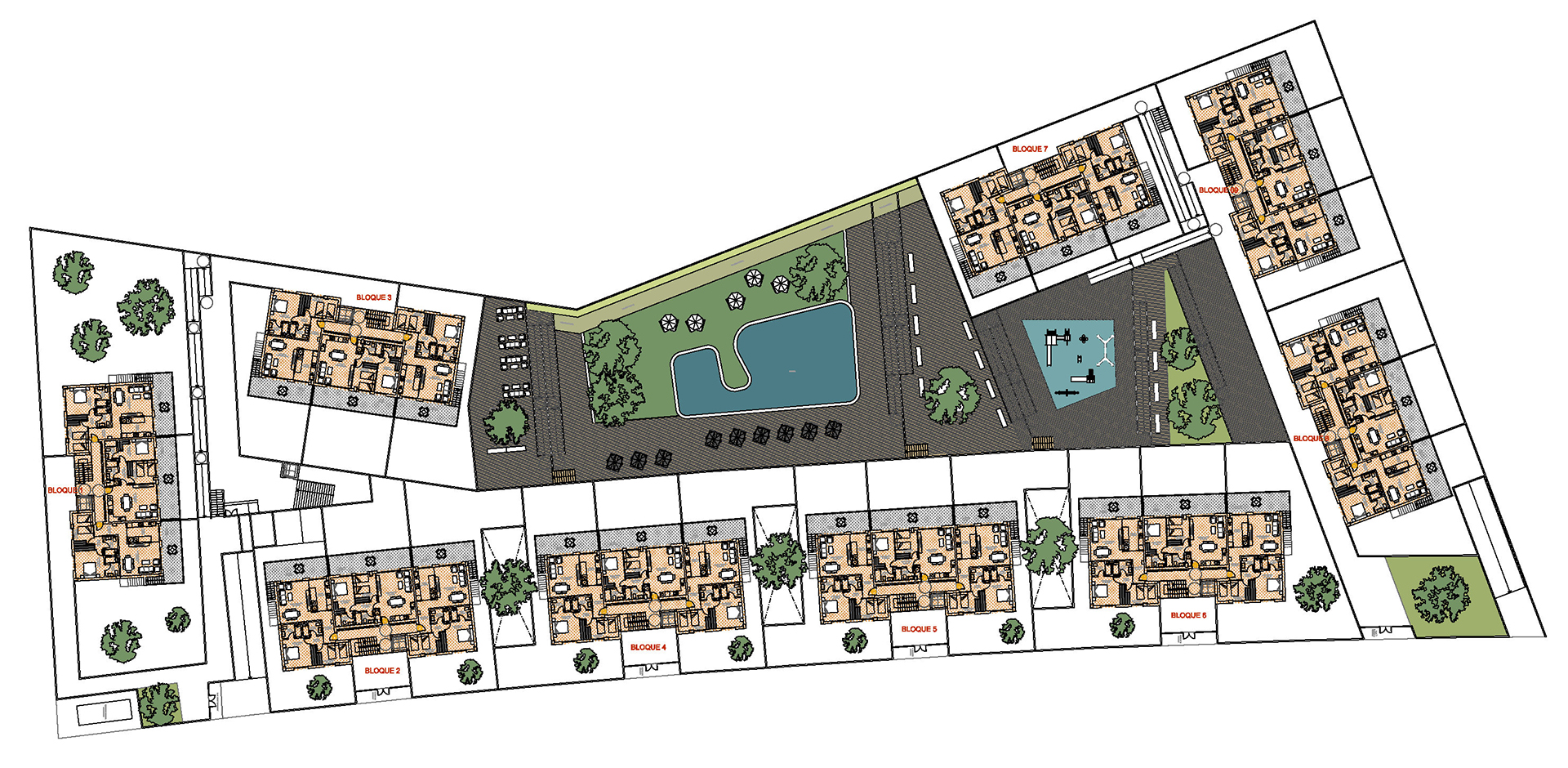 Het wooncomplex biedt een breed scala aan gemeenschappelijke ruimtes die de woonervaring van de bewoners verrijken. Onder hen bevinden zich een gemeenschappelijk zwembad, jacuzzi en een fitnessruimte, ideaal voor vrije tijd en welzijn. De aangelegde gebieden bieden een rustige ruimte om te wandelen of te ontspannen. Voor de actievere bewoners is er een paddle-tennisbaan, terwijl de kleintjes kunnen genieten van een veilige en leuke speeltuin. Bovendien beschikt het complex over gemeenschappelijke parkeergelegenheid, wat comfort en veiligheid voor alle bewoners garandeert.