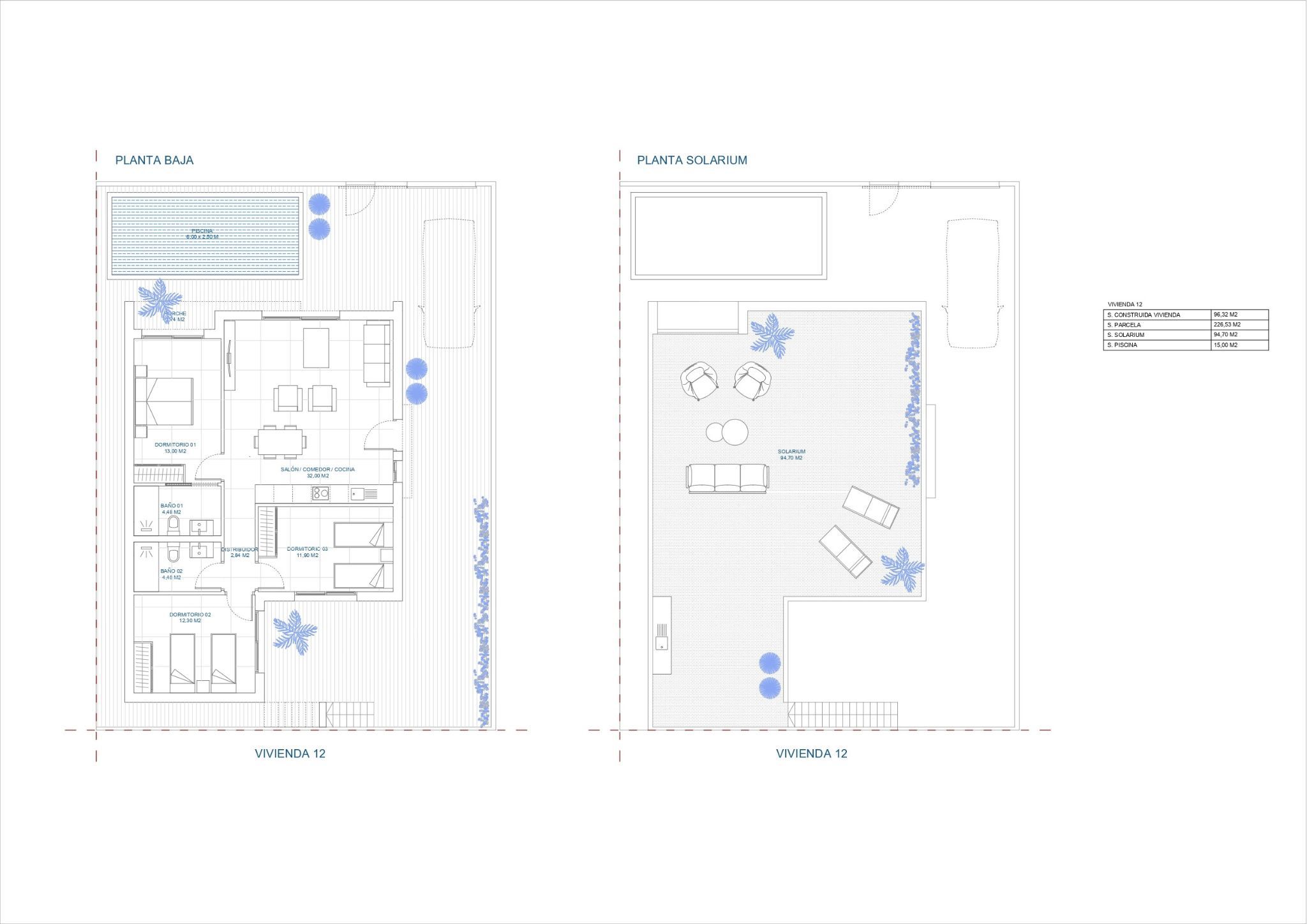 De buitenkant van deze villa's valt op door het moderne ontwerp met strakke lijnen en harmonieuze integratie met de natuurlijke omgeving van Balsicas. Het ruime terras en solarium, uitgerust met een zomerkeuken, creëren perfecte ruimtes om te genieten van het buitenleven, of je nu ontspant of momenten deelt met vrienden en familie. Het privézwembad met buitendouche is het middelpunt van de buitenruimte en biedt een verfrissende plek voor zonnige dagen. Bovendien heeft elke villa een eigen parkeerplaats op het perceel, zodat de bewoners verzekerd zijn van gemak en veiligheid.