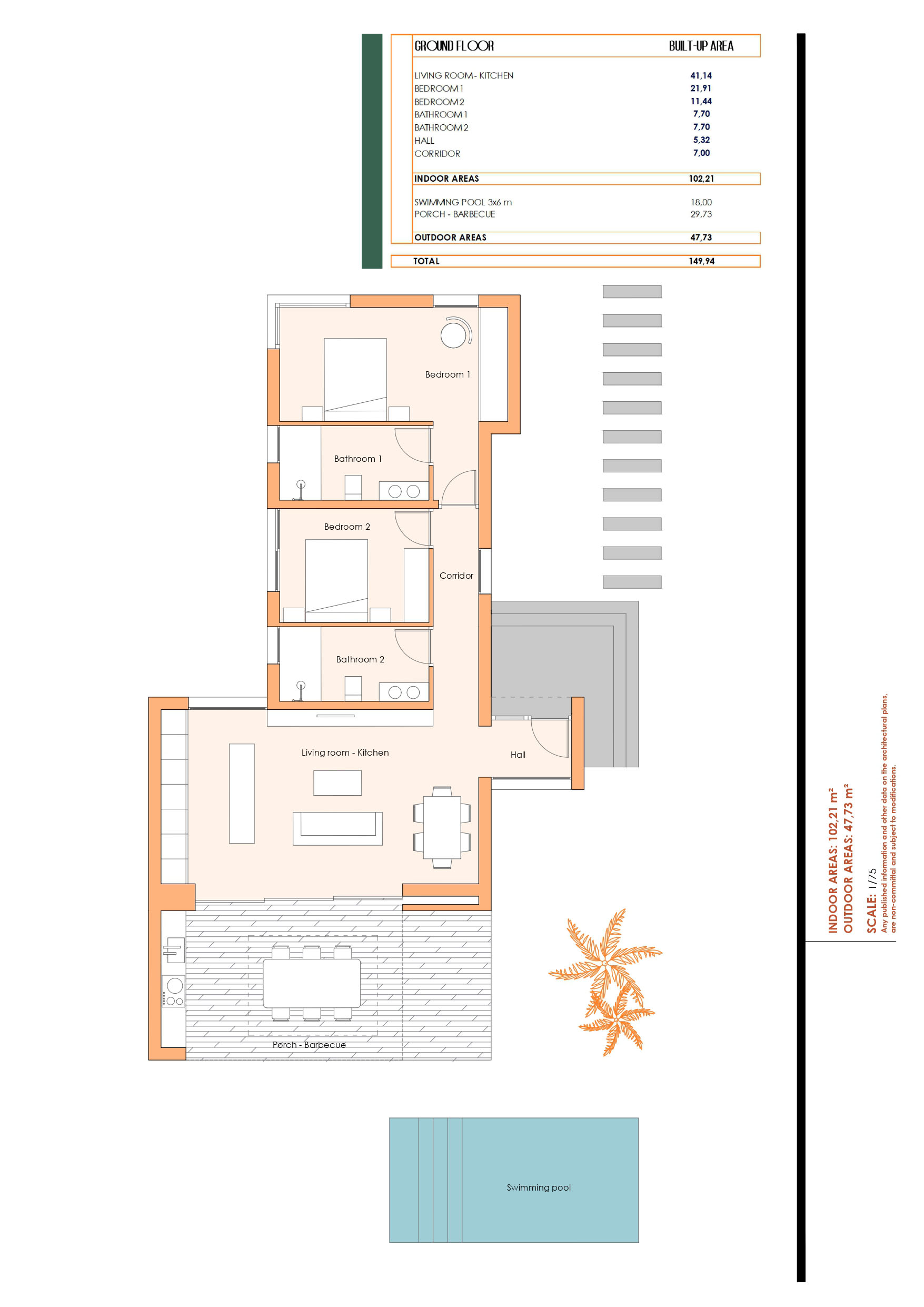 Percelen van 400m2 tot 800m2, ruime buitenleefruimtes en terrassen, golfbaan optie beschikbaar, op het zuiden gelegen, volledig ingerichte badkamers, airconditioning, ventilatiesysteem, tuin met planten en automatische irrigatie, privézwembad met buitendouche, alles inbegrepen in de prijs.