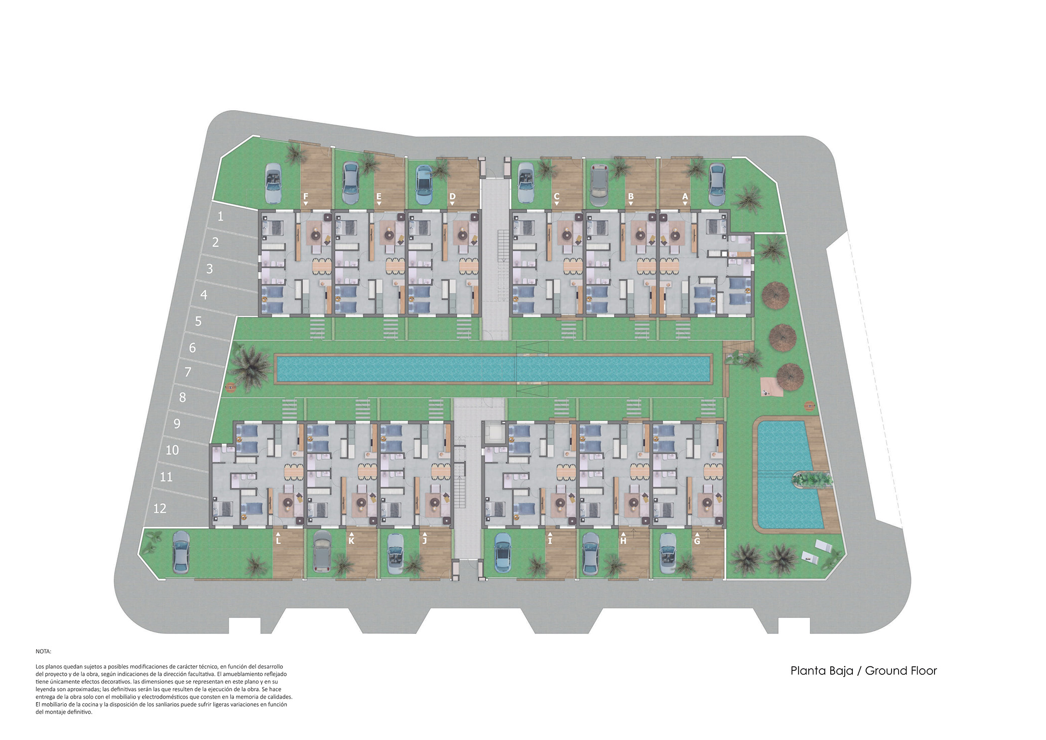 Het is een exclusieve residentie van 24 bungalows, ontworpen en ontworpen om met maximaal comfort te wonen op een bevoorrechte locatie, omringd door allerlei diensten en op slechts 3 km van de zee. Deze woningen zijn nieuw gebouwd en bestaan uit 2 of 3 slaapkamers, gebouwd op de begane grond en eerste verdieping met privé solarium. Het wooncomplex heeft een uitstekende gemeenschappelijke ruimte met een zwembad en een buitenzwembad. Bovendien vormt het wooncomplex een compleet blok, met een optimale oriëntatie die licht en ruimte garandeert in elk van de woningen.