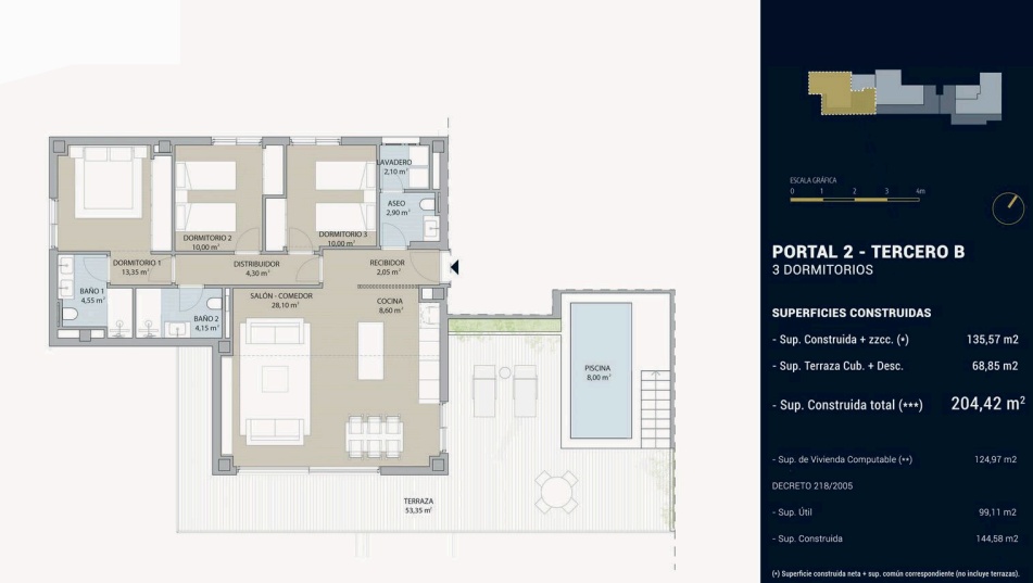 Binnen de eigendommen wordt een functionele en moderne indeling aangeboden. De appartementen en penthouses zijn beschikbaar in configuraties van 2 en 3 slaapkamers, allemaal met 2 badkamers, wat voldoende ruimte biedt voor gezinnen of koppels die op zoek zijn naar comfort en stijl. De woningen zijn uitgerust met airconditioning en ingebouwde kasten, wat het hele jaar door een comfortabele omgeving garandeert. De toevoeging van een privé garage biedt een extra niveau van gemak, waardoor toegang en veiligheid van het voertuig worden vergemakkelijkt.