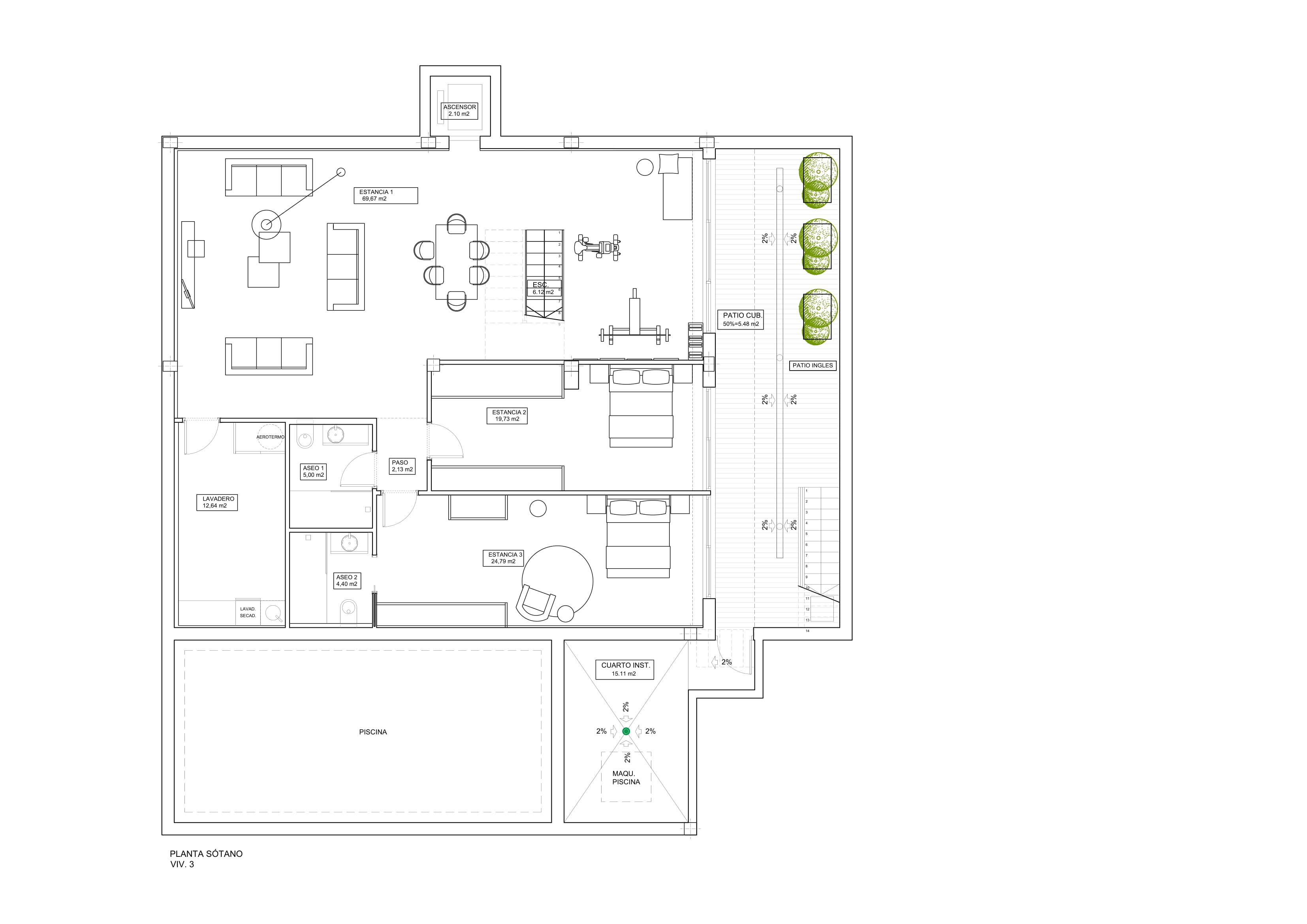 De buitenruimtes van deze woningen zijn ontworpen om een ongeëvenaarde buitenlevensstijl te bieden. Elke woning heeft een privé tuin, ideaal om te ontspannen of buitenactiviteiten te ondernemen. Daarnaast beschikken de woningen over een privézwembad, perfect om af te koelen op warme dagen. De ruime terrassen bieden extra ruimte voor entertainment of gewoon om te genieten van het uitzicht op zee. De aanwezigheid van een solarium voegt een vleugje luxe toe, waardoor u in een privéomgeving van de zon kunt genieten. De toevoeging van pergola's in het exterieurontwerp biedt een esthetisch en functioneel element, dat schaduw en een gezellige ruimte biedt voor buitenbijeenkomsten.