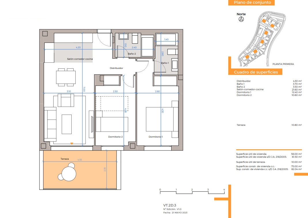 Интерьеры жилья тщательно спроектированы для обеспечения комфорта и стиля. Апартаменты оснащены платформенными полами, которые придают современный и элегантный вид. Безопасность и комфорт гарантированы видеодомофоном и электрическими жалюзи. Встроенные шкафы обеспечивают эффективное хранение, а предварительная установка кондиционера гарантирует, что климат в помещении всегда будет приятным. Жилье доступно в конфигурациях с 2 или 3 спальнями, все с 2 ванными комнатами, что делает их идеальными как для семей, так и для пар или индивидуальных лиц, ищущих дополнительное пространство.