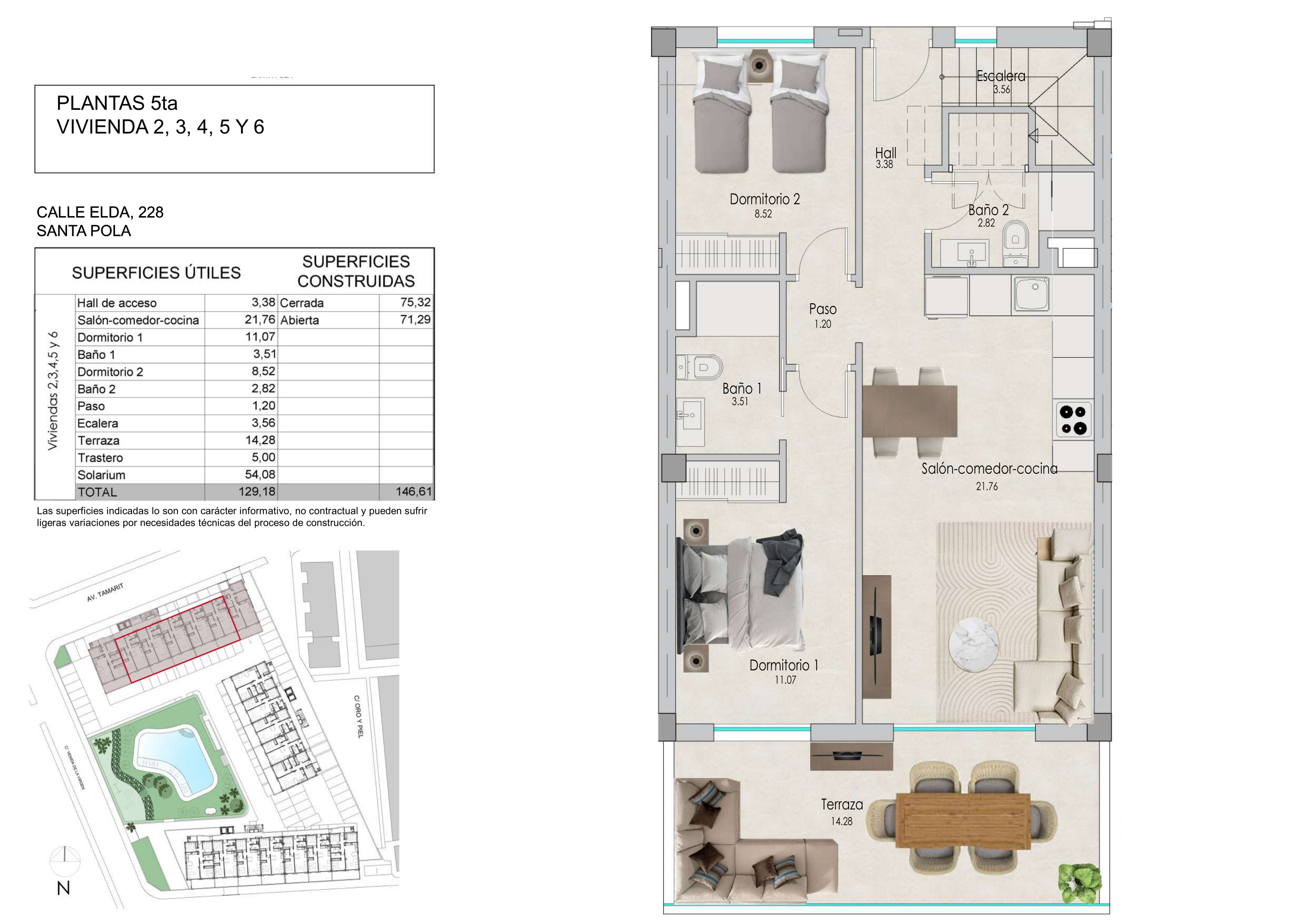 Экстерьеры этого жилого комплекса в Санта-Пола спроектированы для максимального наслаждения средиземноморской средой. Недвижимость имеет террасы с видом на море, идеально подходящие для отдыха на свежем воздухе. Кроме того, некоторые типы включают солярий, предоставляя дополнительное пространство для досуга и отдыха под солнцем. Включение пергол и джакузи в некоторых единицах добавляет роскоши и комфорта, позволяя жителям наслаждаться моментами расслабления в уединении своего дома.