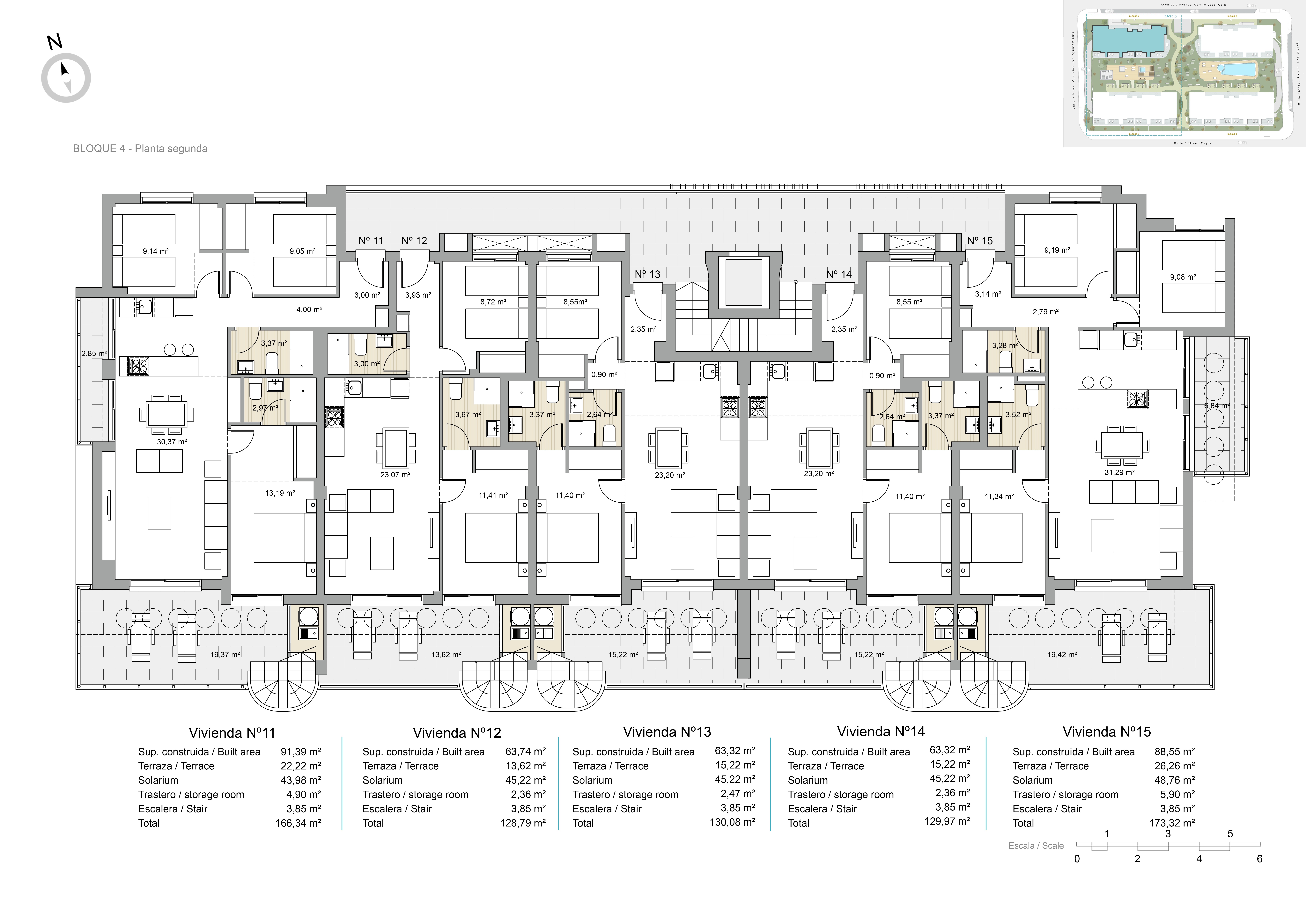 Экстерьеры этих объектов спроектированы для максимального наслаждения средиземноморским климатом. Каждое жилье имеет террасу, идеальную для отдыха на свежем воздухе или семейных обедов. Кроме того, некоторые типы включают частный сад, предоставляя дополнительное зеленое пространство для отдыха или садоводства. Для тех, кто ищет панорамные виды, Пентхаусы предлагают солярий, идеальный для принятия солнечных ванн или созерцания окружающей среды. Расстояние всего 2 км до моря позволяет наслаждаться морским бризом и прогулками по побережью в любое время.