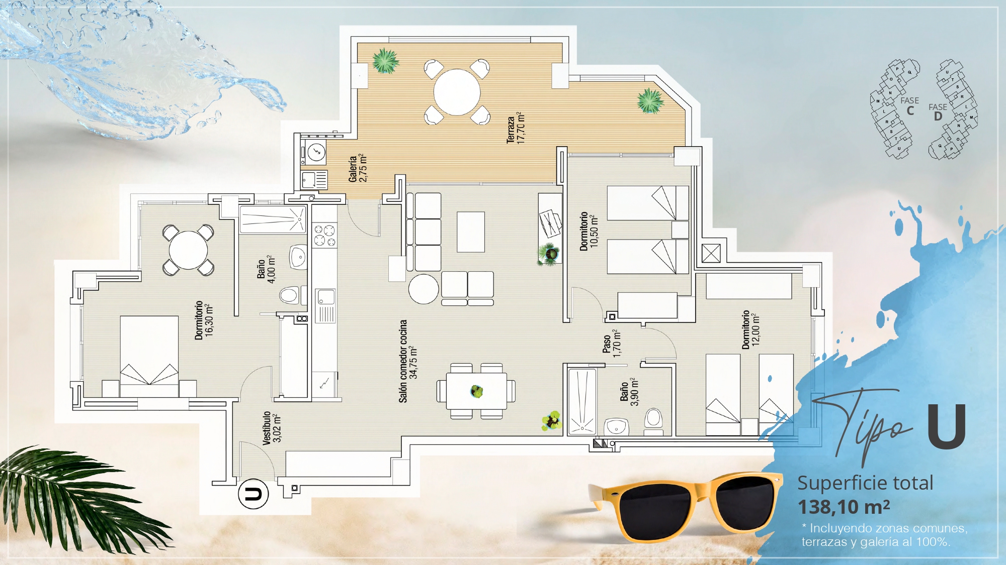 Интерьер жилья тщательно продуман для максимального комфорта и функциональности. Квартиры и пентхаусы доступны в конфигурациях с 1, 2 и 3 спальнями, с 1 или 2 ванными комнатами, адаптированными к потребностям каждого жителя. Керамические полы придают современный вид и легки в уходе. Кондиционер и дополнительная предустановка обеспечивают приятную атмосферу круглый год. Электрические жалюзи и видеодомофон добавляют дополнительный уровень комфорта и безопасности. Встроенные шкафы оптимизируют пространство для хранения, поддерживая порядок и организацию в доме.