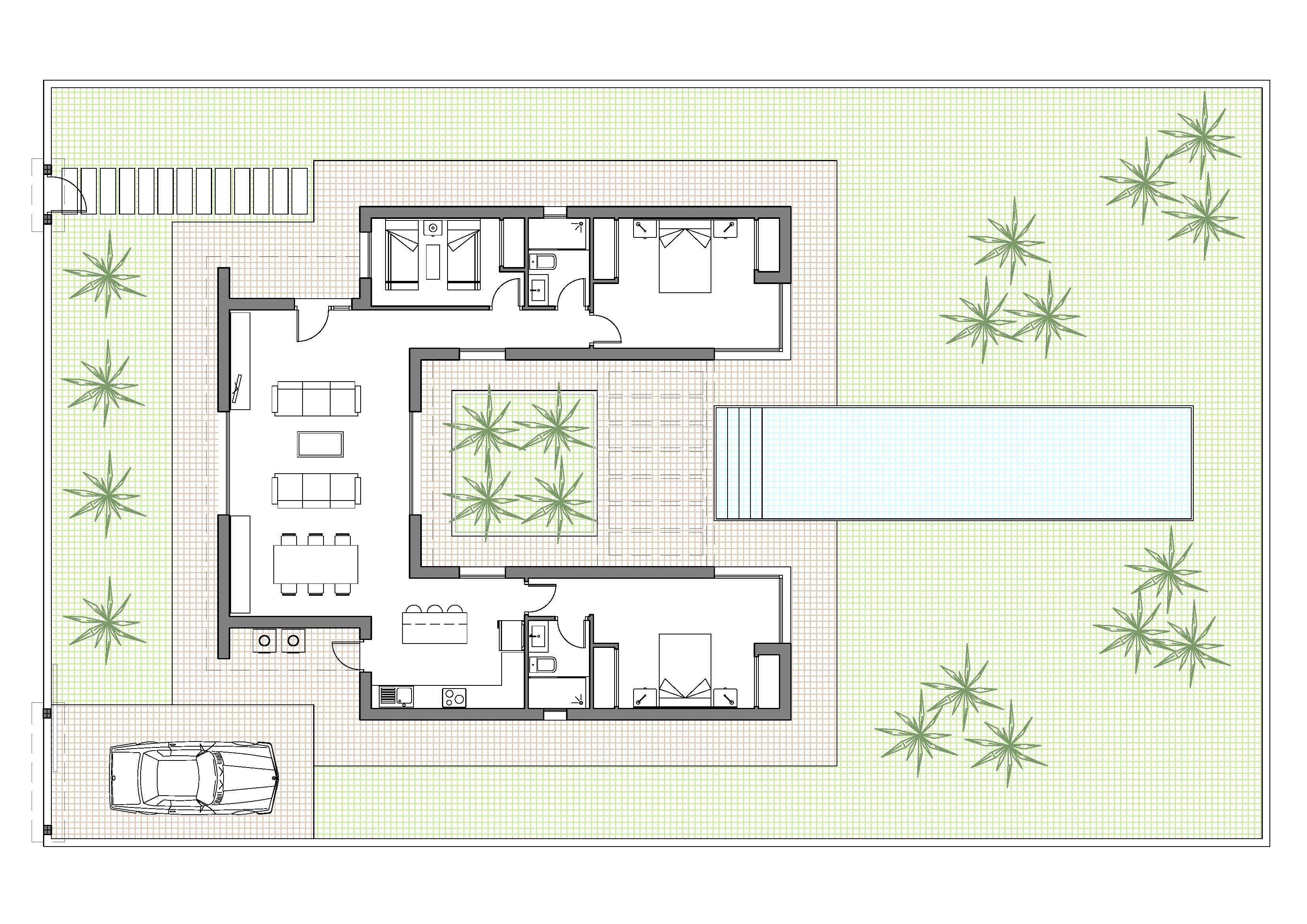 Экстерьер дома — это настоящий оазис спокойствия. Сад, тщательно спроектированный, предлагает зеленое пространство, идеально подходящее для наслаждения свежим воздухом и организации семейных встреч или встреч с друзьями. Кроме того, терраса предоставляет идеальное место для отдыха и наслаждения средиземноморским климатом. Наличие перголы добавляет элегантности и функциональности, позволяя наслаждаться внешним пространством даже в самые солнечные дни. Эти внешние элементы превращают недвижимость в идеальное место для жизни на свежем воздухе в Бенихофаре.