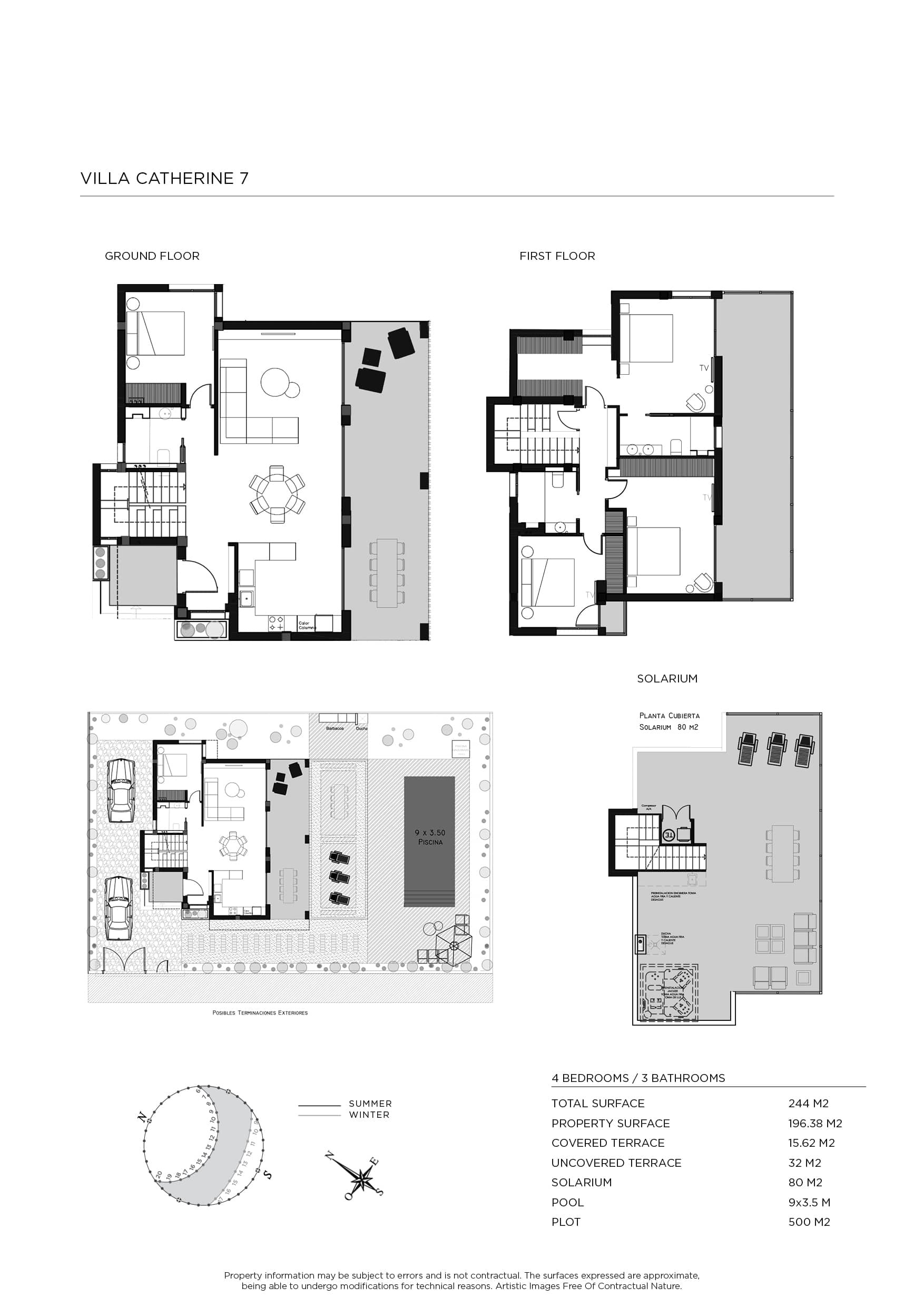 Exteriören av dessa bostäder är en verklig oas av avkoppling. Varje fastighet har en privat trädgård, perfekt för att njuta av det medelhavsklimatet. Närvaron av en privat pool tillför en lyxig touch, vilket möjliggör svalka under de varmaste dagarna. Dessutom erbjuder terrasserna och solariumet extra utrymmen för utomhusaktiviteter, idealiska för familjesammankomster eller bara för att njuta av en stunds lugn. Pergolan ger skugga och en mysig plats att vila under de intensiva soltimmarna.