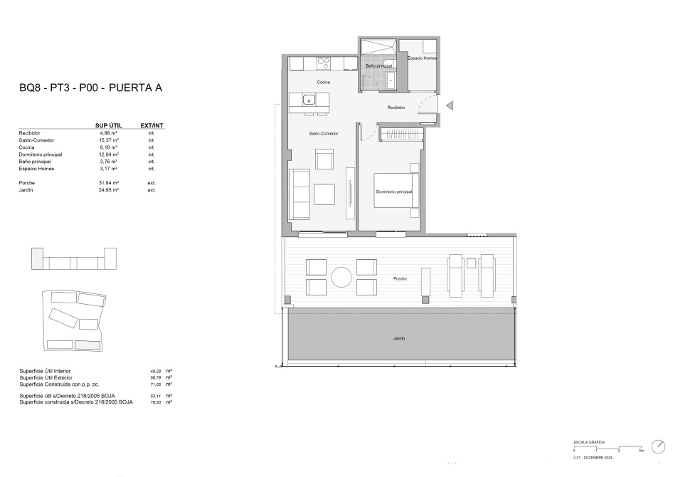 Bostäderna är noggrant designade för att maximera komfort och funktionalitet. Interiören har porslinsgolv som ger en touch av elegans och hållbarhet. Alla fastigheter är utrustade med moderna vitvaror och inbyggda garderober, vilket optimerar utrymme och organisation. Bostäderna varierar i storlek från ett, två och tre sovrum, med ett eller två badrum, anpassade till olika familjebehov. Dessutom inkluderar varje bostad ett videoporttelefon system för ökad säkerhet och bekvämlighet.