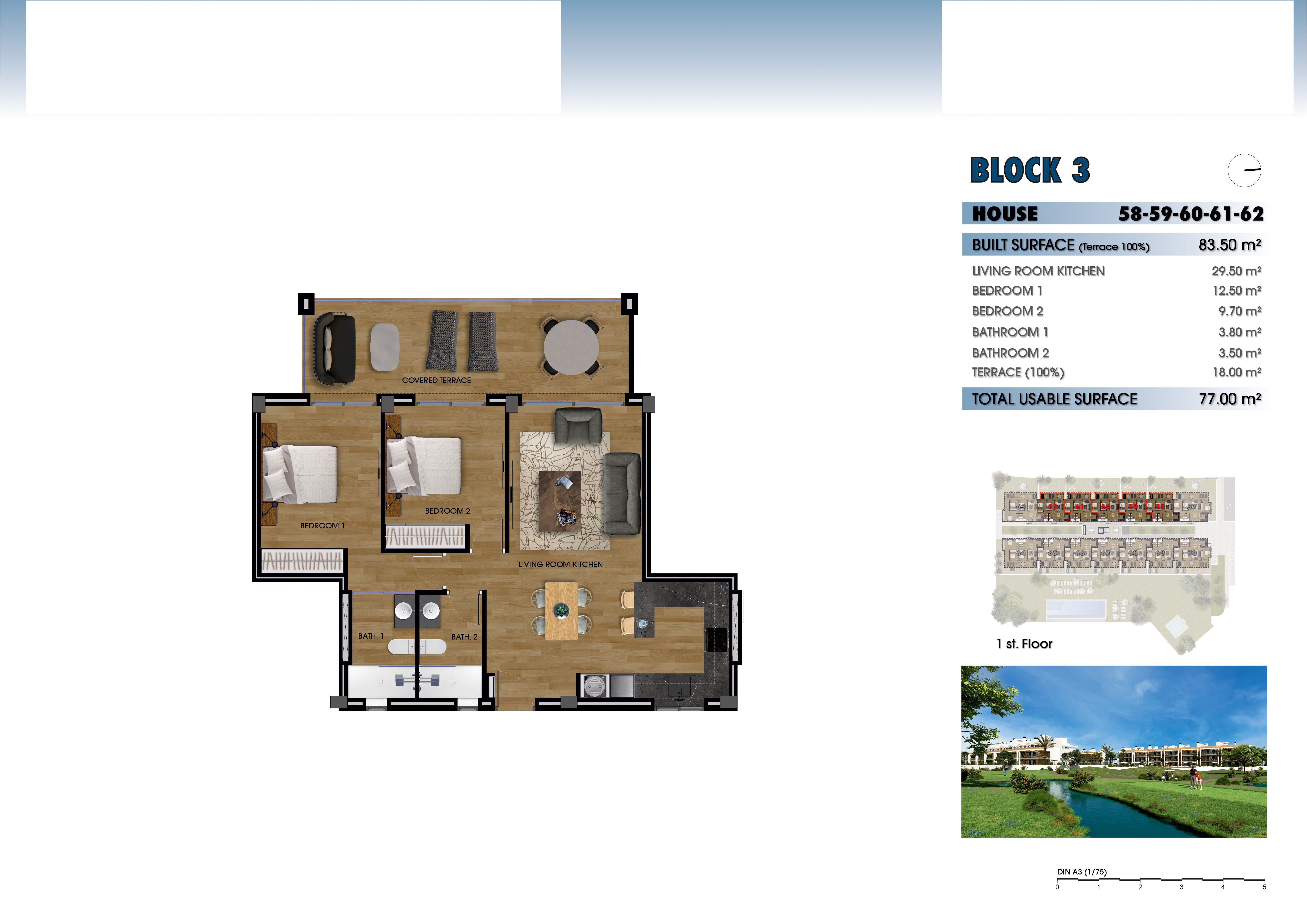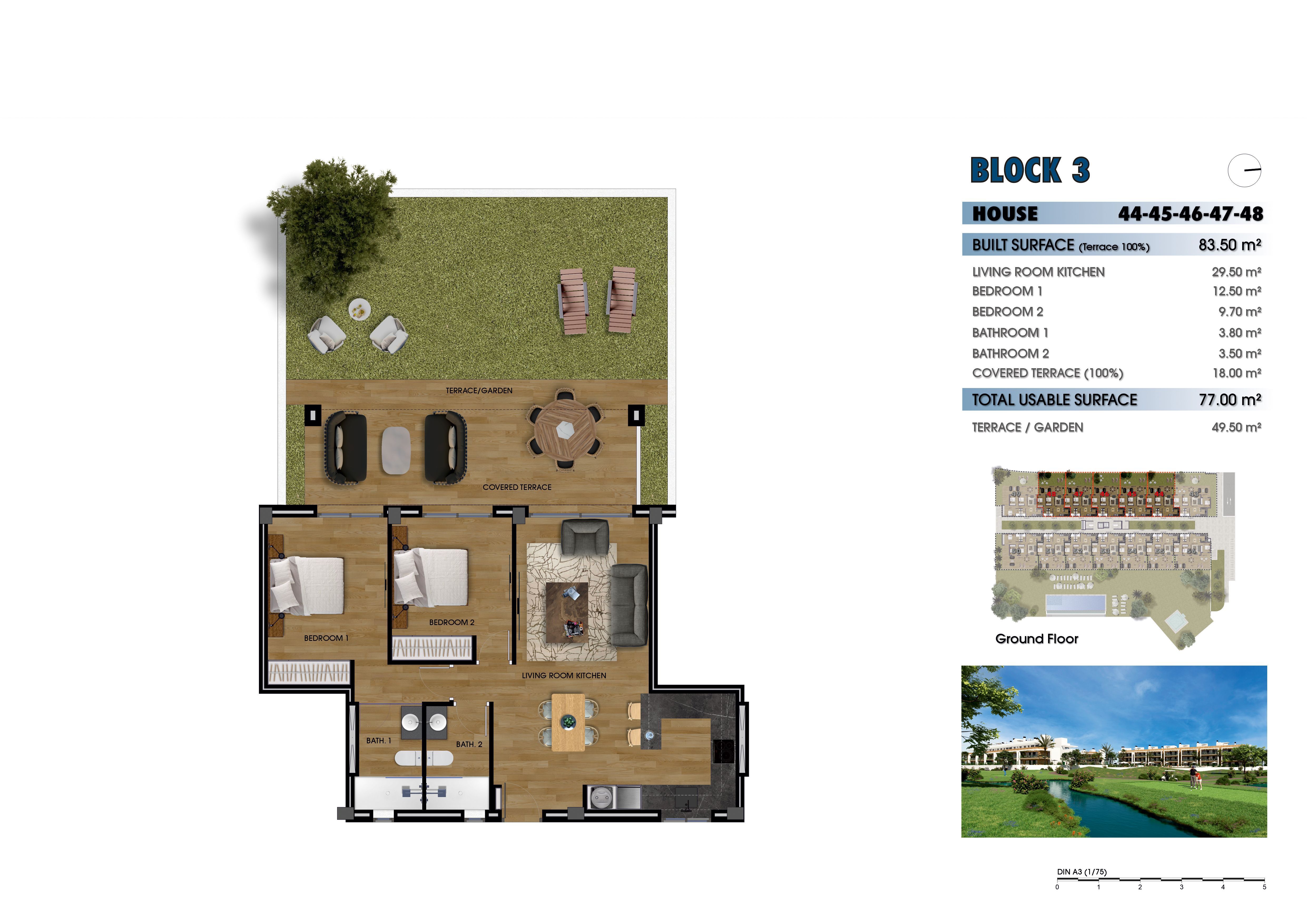 Beläget i den charmiga staden Los Alcázares erbjuder detta bostadsområde en mängd olika boendealternativ som passar olika behov och livsstilar. Med totalt 87 enheter kan framtida invånare välja mellan lägenheter, markplan och takvåningar, alla utformade för att maximera komfort och funktionalitet. Närheten till havet, bara 1 km bort, gör det möjligt att njuta av havsbrisen och spektakulära vyer. Dessutom gör närheten till en golfbana, bara 100 meter bort, detta bostadsområde till ett idealiskt val för golfentusiaster. Närmaste flygplats ligger 44 km bort, vilket underlättar för dem som reser ofta.