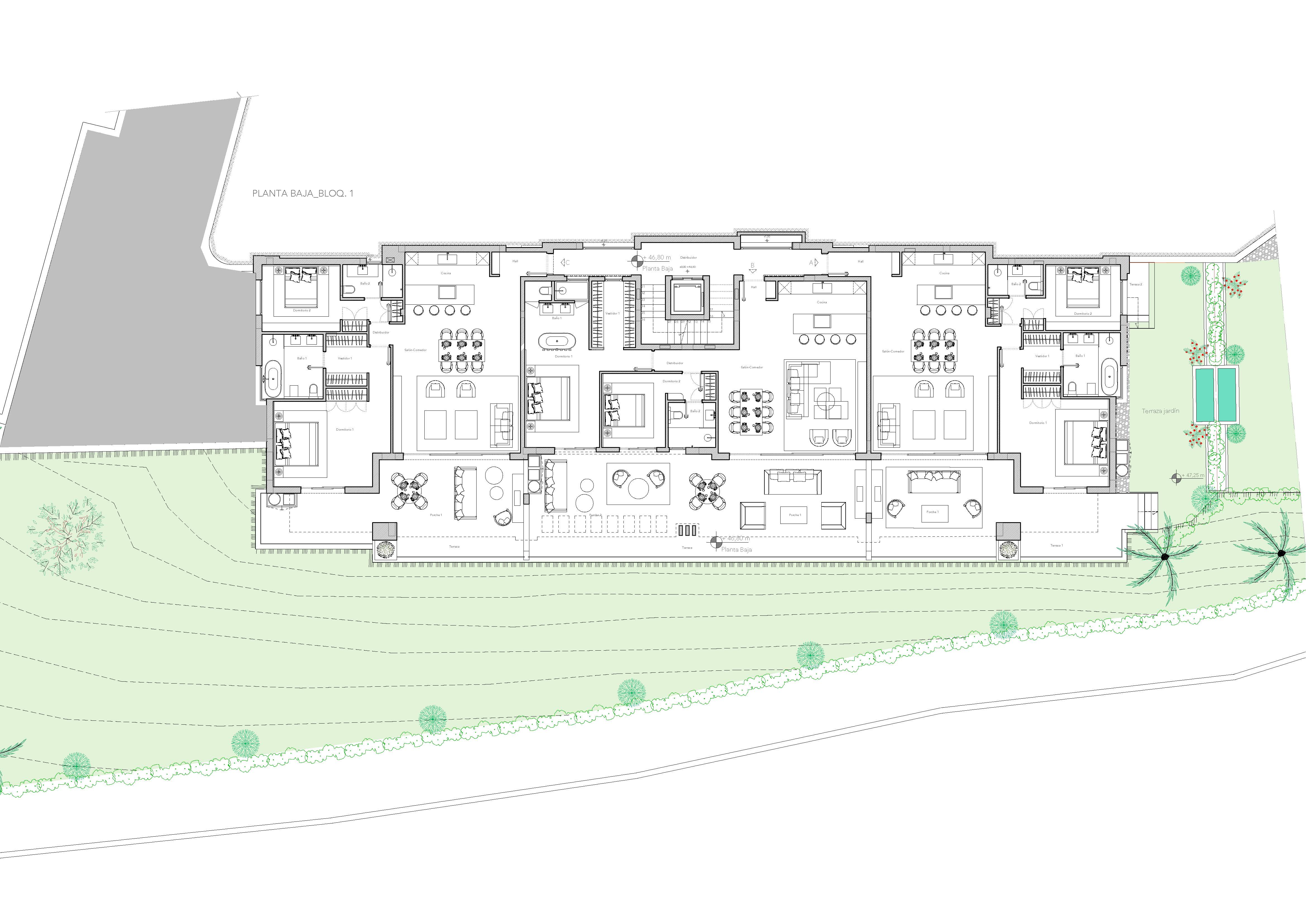 L'intérieur de ces propriétés a été conçu avec un accent sur le confort et la modernité. Les logements offrent entre 2 et 3 chambres et sont équipés de 2 ou 3 salles de bains, assurant un espace suffisant pour des familles de différentes tailles. L'inclusion de la climatisation garantit une ambiance agréable tout au long de l'année. Les placards intégrés fournissent un rangement efficace, gardant les espaces ordonnés et sans encombrement. De plus, les propriétés sont équipées d'appareils modernes, facilitant la vie quotidienne des résidents. La sécurité est une priorité, avec un interphone vidéo inclus dans chaque logement, offrant tranquillité et contrôle d'accès.